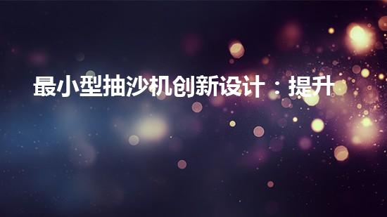 最小型抽沙機創(chuàng)新設(shè)計:提升效率的抽沙設(shè)備如何改變產(chǎn)業(yè)格局?